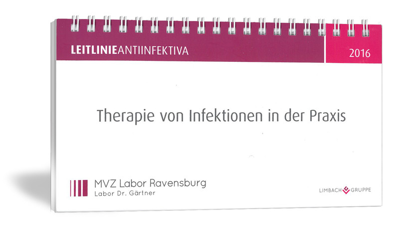 Als Hilfmittel für eine leitliniengerechte adäquate Antiinfektivatherapie im Praxis-Alltag haben erfahrene Mikrobiologen und Antibiotic-Stewardship-Experten der Limbach Gruppe, darunter auch Kollegen vom MVZ Labor Ravensburg, die neue "Antiinfektiva-Leitlinie der Limbach Gruppe" entwickelt. In diesem kompakten, hoch aktuellen und praxisnahen Leitfaden im Ringbuchformat finden Sie u.a. diese Themen: